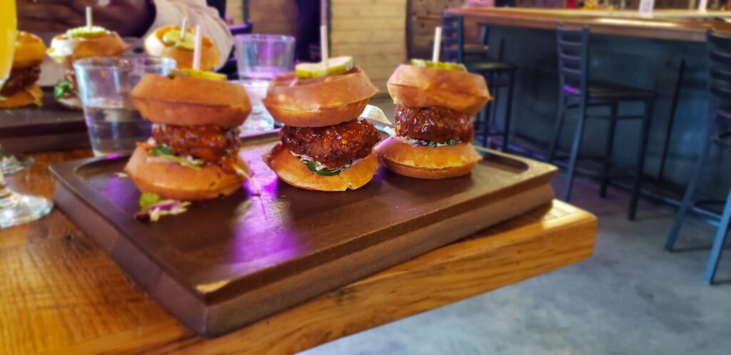 Ainsworth has incorporated the theme of “Nashville Hot” chicken with their waffles and when I tell the chicken is hot, the chicken is hot! Hot and good. This restaurants combination of hot chicken and waffles is sure to please the ultimate foodie, not only with its food but the chic atmosphere and the hip vibes sets the stage for a sexy-brunch vibe.