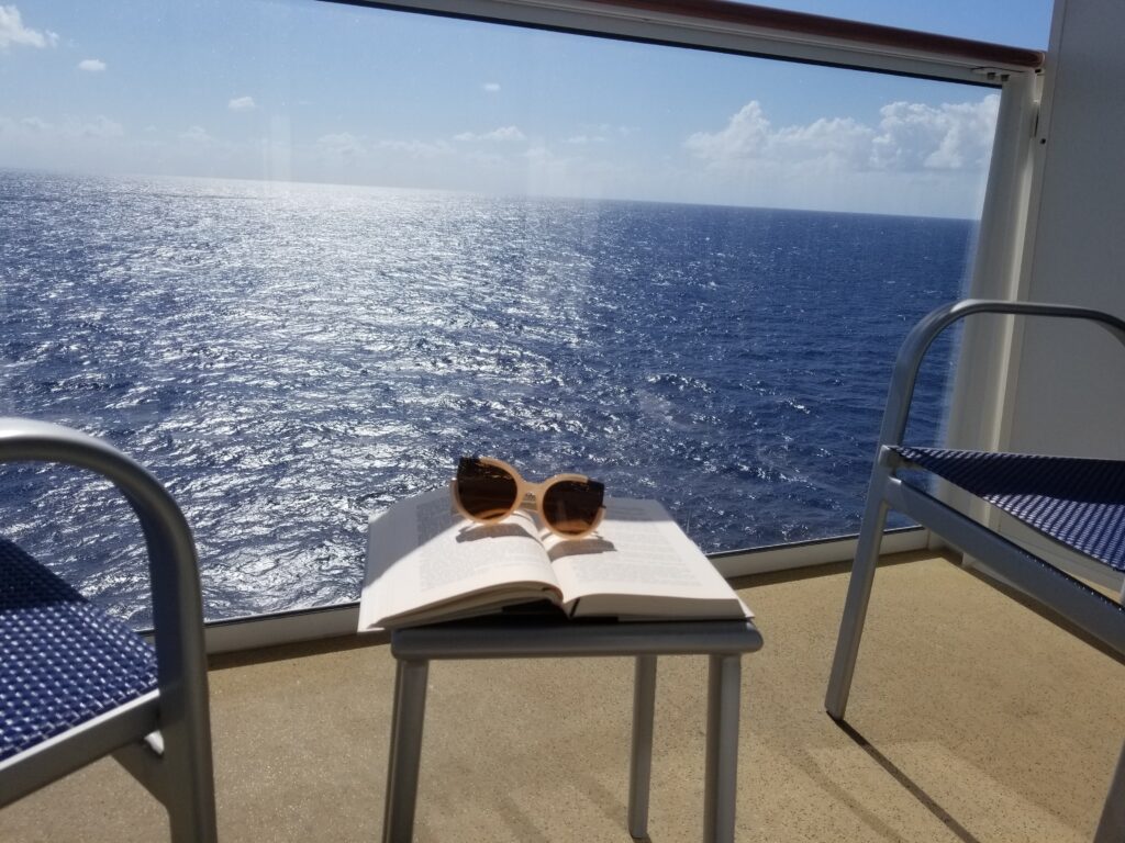 • Inspiration.  A balcony is a beautiful place to read and write a blog if you are working and sailing.  The natural calmness of the ocean does wonders for the creative mind and spirit.