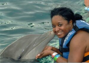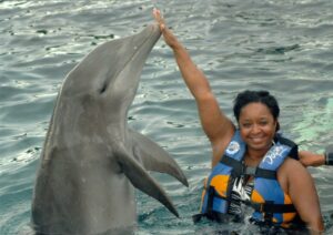 Once the cruise ship docked, I hoped in a cab and went to my WOW experience. Before getting in the water, I met with an instructor to learn hand signals. Since Dolphins cannot hear voices, I had to learn sign language for Dolphins. After receiving my instructions, I head to the water to meet Luis, the dolphin, and put my sign language into action.